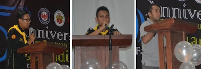 Laporan Ketua Panitia, Imam Fajarullah (kiri,) Sambutan Ketua TBM ISchiadicus, Syahid Khairullah Hadini (tengah) dan Pembina TBM ISchiadicus, dr. Ashaeryanto (kanan)